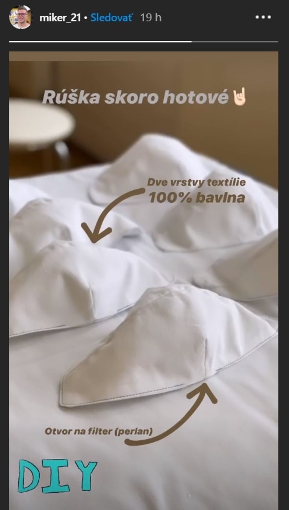 Nezostal však iba pri slovách a výzvach. Keďže aj Mišovi momentálne ubudli pracovné povinnosti, rozhodol sa pomôcť ostatným. A pustil sa do výroby špeciálnych rúšok. Prvé kusy sú už takmer hotové a s výsledkom sa pochválil na sociálnej sieti. Palec hore, Michal!